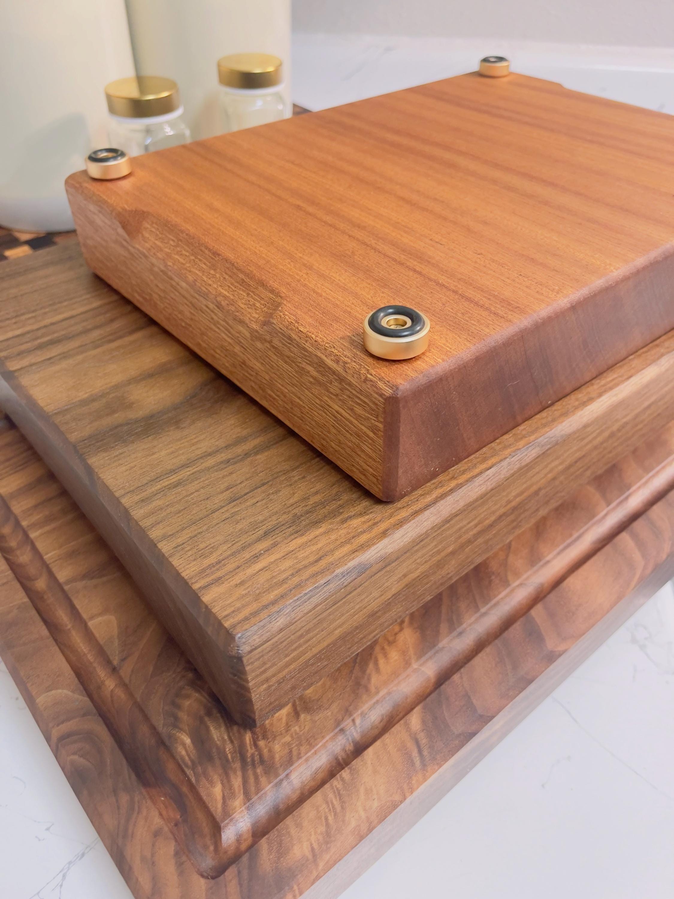 These Solid One-Piece Chopping board are made from solid hardwoods that are super durable and last forever, the golden metal and rubber feet don't even move when you're using it. Plus, it's got this gorgeous, sleek look that just looks amazing in any kitchen.